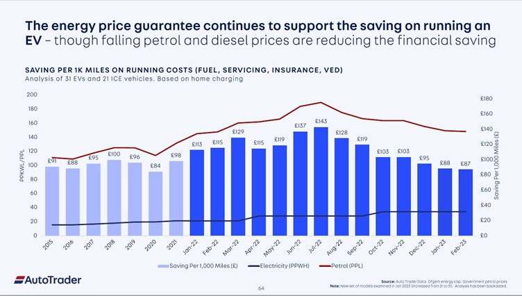 AutoTrader’s research into costs of running EVs versus a petrol or diesel car, show that, while they have reduced significantly from their peak in 2022, EVs are currently still providing considerable savings for drivers, as on average they are £87 a month cheaper to run.
